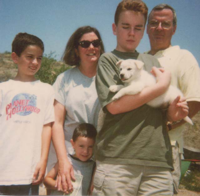 Left to right: Danny (12), Mikey (6) and Tommy holding Vanilla (16),